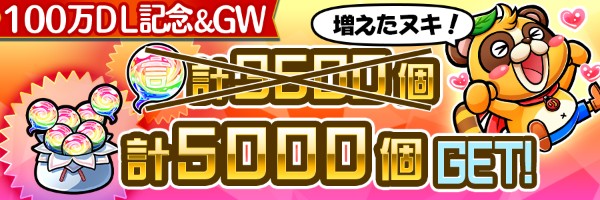 『コトダマン』は、2018年4月19日(木)に、100万ダウンロードを突破しました。これを記念して、期間中毎日ログインするだけで「虹のコトダマ」が合計1,500個手に入る「100万DL記念ログインボーナス」を開催中です。