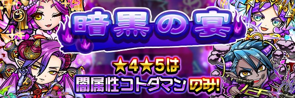 GW期間中、毎日日替わりで各属性のピックアップ「しょうかん」が開催されます。★4、★5の「コトダマン」出現時には、日ごとにピックアップされた属性のコトダマンが必ず出現!