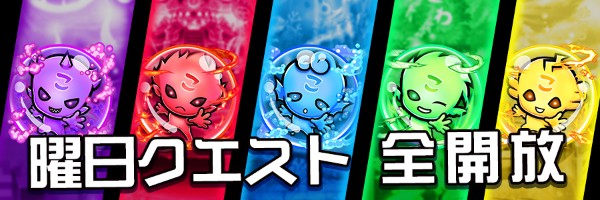 期間中、「コトダマン」の進化素材を獲得できる「曜日クエスト」が全開放されます。お目当てのクエストに挑んで、「コトダマン」をたくさん進化させましょう!