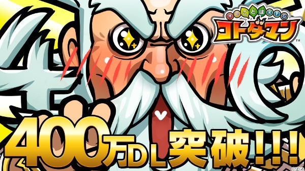 『共闘ことばRPG コトダマン(コトダマン)』にて、ダウンロード者数が400万人を突破しました。400万ダウンロードを記念して、ゲーム内イベントを準備中です。