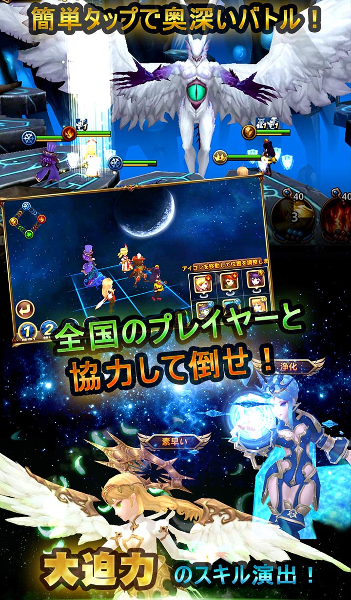 キャラクターは神々、天使、精霊、騎士、悪魔、獣人などあらゆる世界のあらゆる種族が登場!