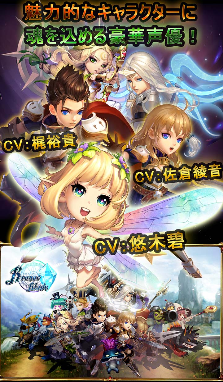 『クロノスブレイド』は、スマートフォン最高峰のグラフィック・バトル演出と、リアルタイム協力バトル、最大80人VS80人のギルドバトル、レイドボス、対戦などやりこみ度満載なバトルコンテンツが魅力の王道3DバトルRPGです。また、今までにない新感覚成長システムも搭載されています。
