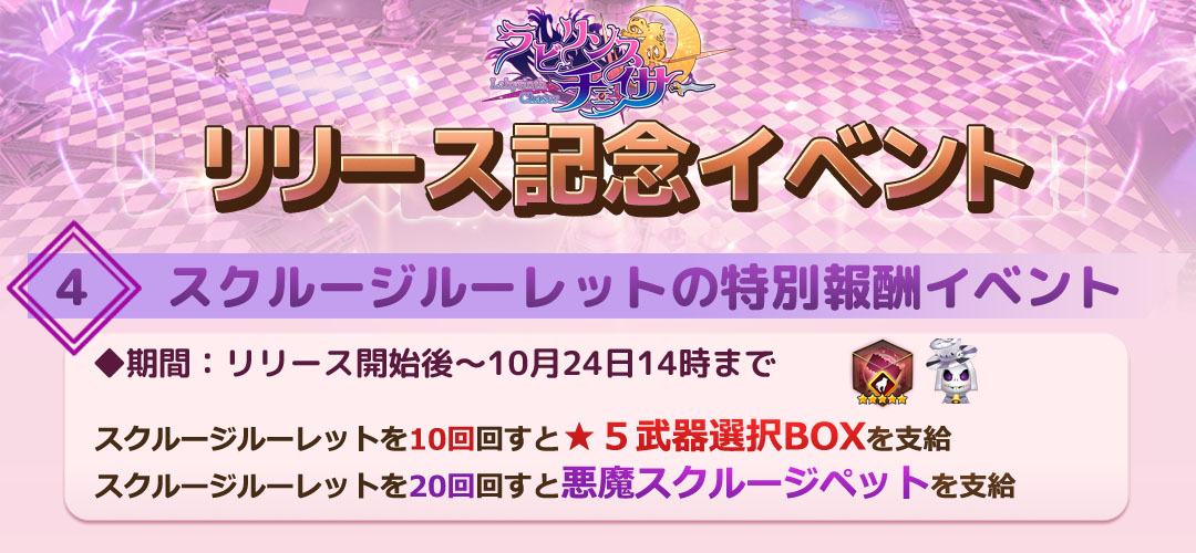 本イベントでは、スクルージルーレットを回すことで、★5武器選択BOXや「悪魔スクルージ」のペットがもらえます。