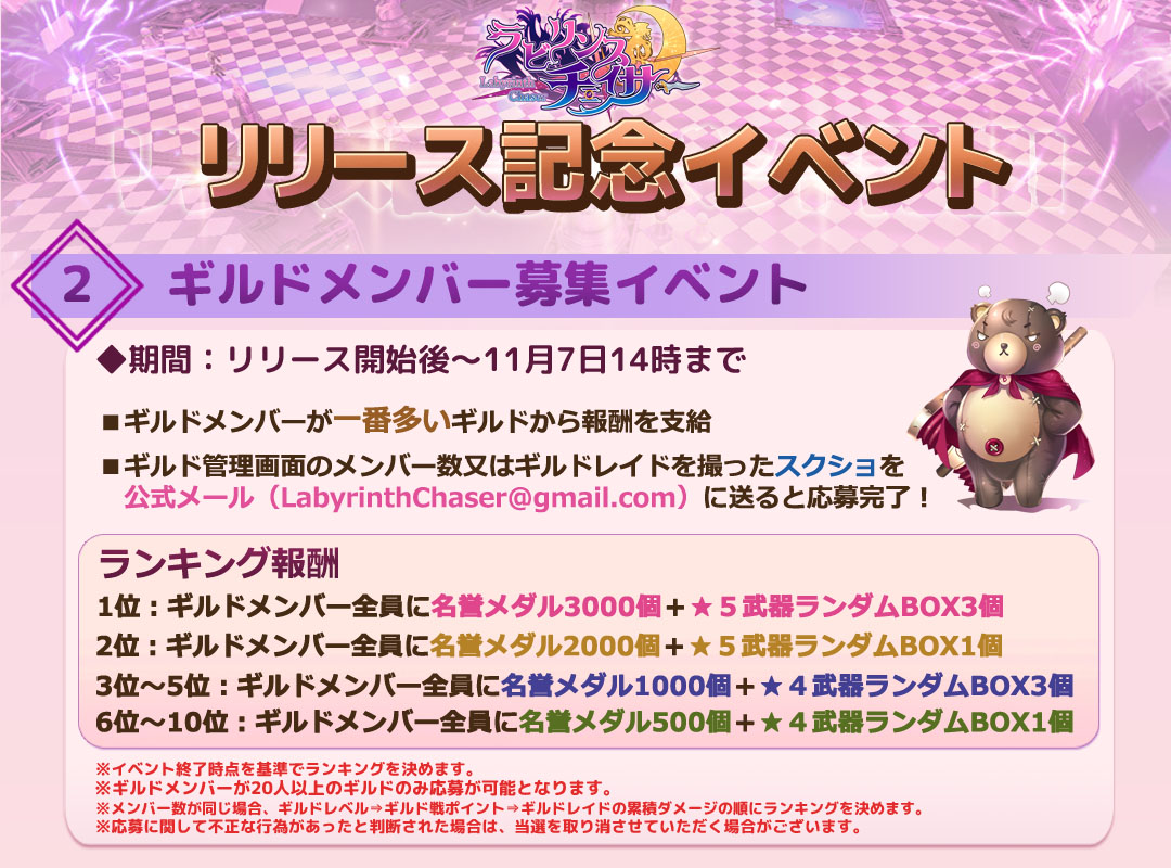 本イベントでは、ギルドメンバーが多い順に名誉メダルや★5武器ランダムBOXなどの報酬がもらえます。