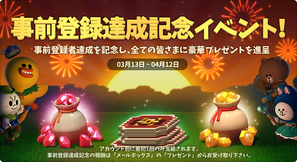 国内の事前登録者が50万人を突破した報酬として、期間中に『LINE リトルナイツ』にログインした全てのプレイヤーに、「ガチャチケット150枚」「ルビー175個」「ムーンストーン3,000個」がプレゼントされます。