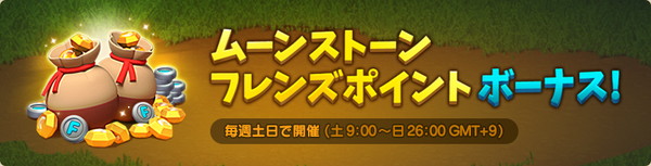「フルムーンイベント」は、毎週土曜日の9:00から月曜日の4:00までの期間内に開催され、対戦後に獲得できる「フレンズポイント」と「ムーンストーン」が通常の2倍になるイベントです。