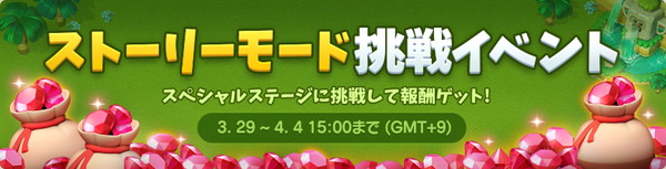 期間中、ストーリーモード第1章のハードモードをクリアすると、高難易度のスペシャルステージが5ステージ開放され、このスペシャルステージをクリアするとルビーが手に入る、ストーリーモード挑戦イベントが開催されます。全てのスペシャルステージをクリアすると、抽選で大量のルビーを入手可能。スペシャルステージは難易度が高いので、充分にレベルアップしてイベント開催に備えましょう。