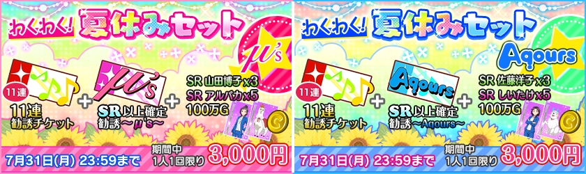 新イベント開催を記念して、7月15日(土)16:00から7月31日(月)23:59までの期間限定でショップに「わくわく!夏休みセット」が登場。ショップメニュー内のバナーより購入できます。