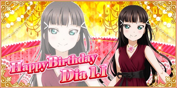 「黒澤ダイヤ」のお誕生日をお祝いして、お誕生日当日に『スクフェス』にログインしたユーザー全員に、「ラブカストーン5個」「お誕生日記念称号」「お誕生日記念UR部員」がプレゼントされます。