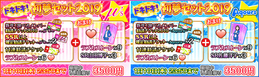 ショップに「ドキドキ!初夢セット2019~μ's~」「ドキドキ!初夢セット2019~Aqours~」が登場します。
