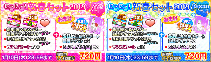 ショップに「にこにこ!新春セット2019~μ's~」「にこにこ!新春セット2019~Aqours~」が登場します。