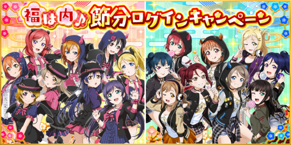 『ラブライブ!スクールアイドルフェスティバル(スクフェス)』にて、2019年1月29日(火)より、特別ログインボーナス「福は内♪節分ログインキャンペーン」が開催予定です。