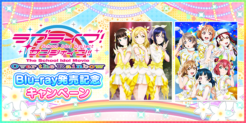『ラブライブ!スクールアイドルフェスティバル(スクフェス)』にて、2019年7月26日(金)の「ラブライブ!サンシャイン!!The School Idol Movie Over the Rainbow」Blu-ray発売を記念して、ログインボーナスや限定課題追加など、さまざまなキャンペーンが開催されます。
