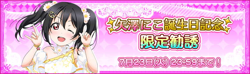 2019年7月21日(日)0:00より、「矢澤にこ」誕生日限定勧誘が実施予定です。