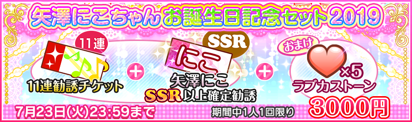 2019年7月21日(日)0:00より3日間限定で、「矢澤にこちゃんお誕生日記念セット」が販売予定です。