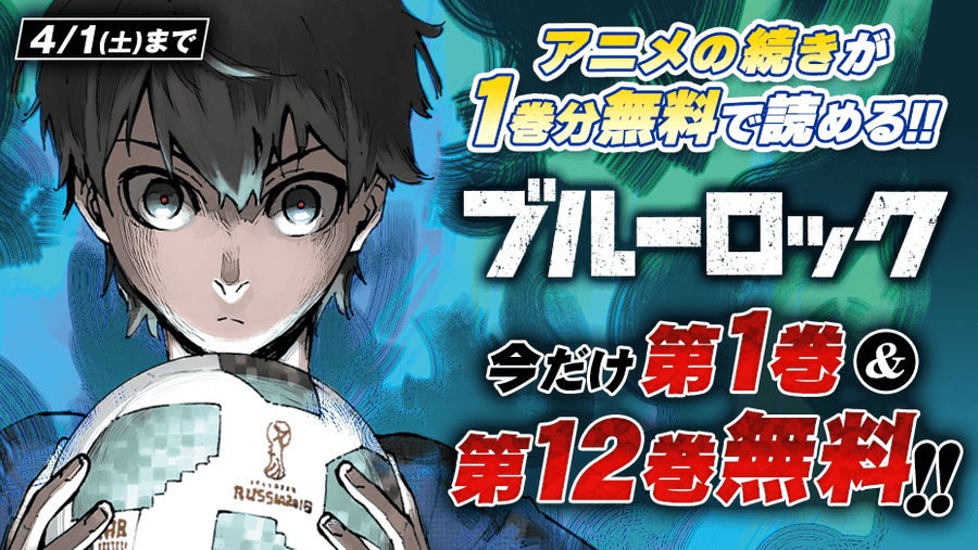漫画アプリ「マガポケ」にて、2023年4月1日(土)まで、史上最もイカれたサッカー漫画『ブルーロック』の第1巻&第12巻が無料配信されています。