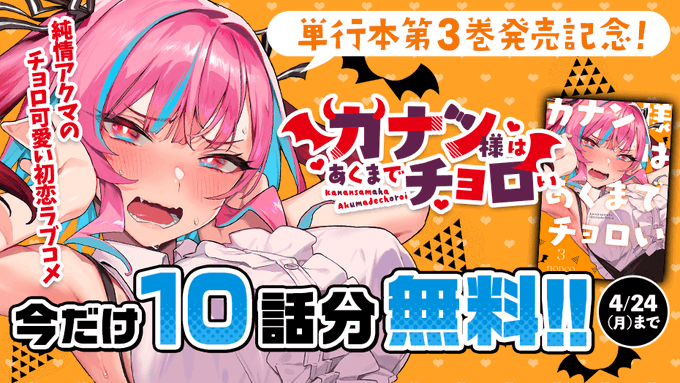 漫画アプリ「マガポケ」にて、単行本第3巻の発売を記念して、2023年4月24日(月)まで、『カナン様はあくまでチョロい』が10話分無料配信されています。