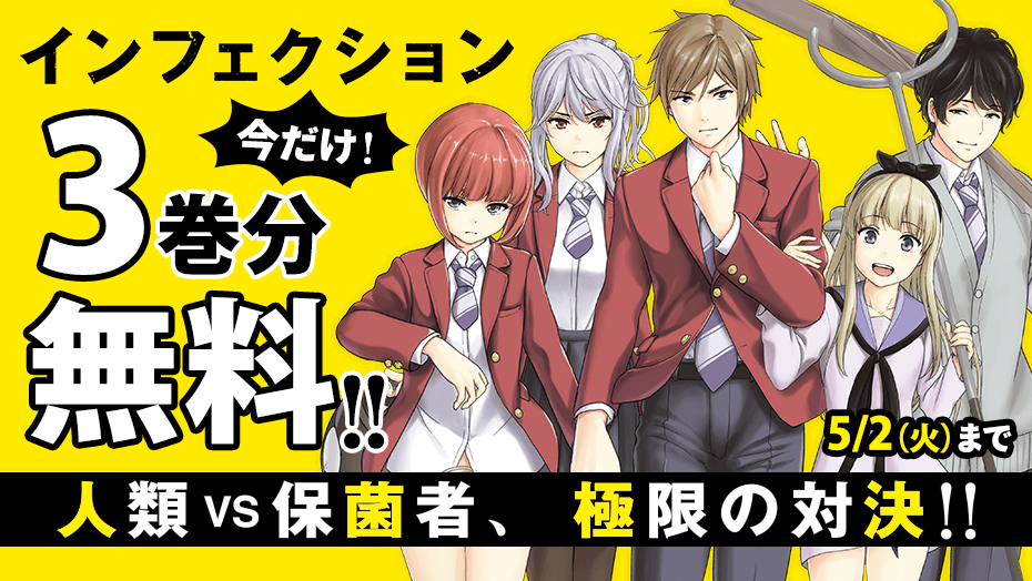 漫画アプリ「マガポケ」にて、2023年5月2日(火)まで、パニック・SFサスペンス『インフェクション』が3巻分無料配信されています。