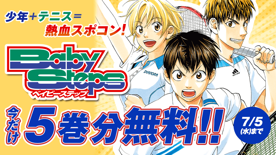 漫画アプリ「マガポケ」にて、2023年7月5日(水)まで、『ベイビーステップ』が5巻分無料配信されています。