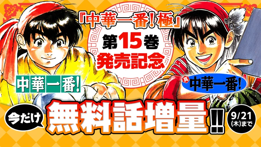 漫画アプリ「マガポケ」にて、2023年9月21日(木)まで、『真・中華一番!』第15巻発売記念の無料話増量キャンペーンが開催中です。