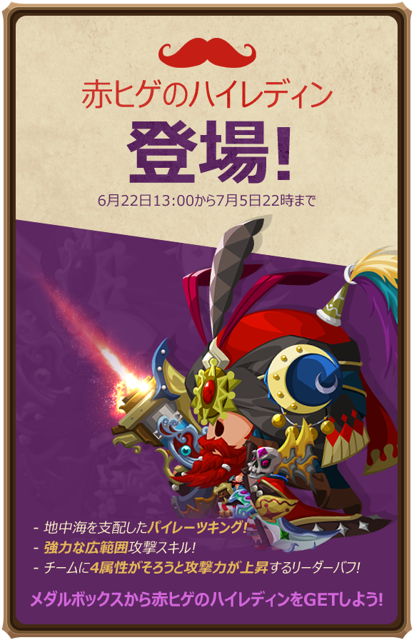 また、メダルボックスには火属性の海賊英雄「ハイレディン」も追加!