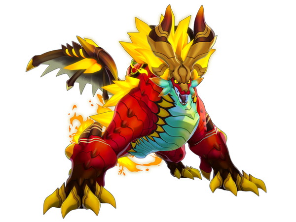 長く強靭な尻尾を持つ「斬竜」。強力な火属性のスキルで相手を焼き払う。