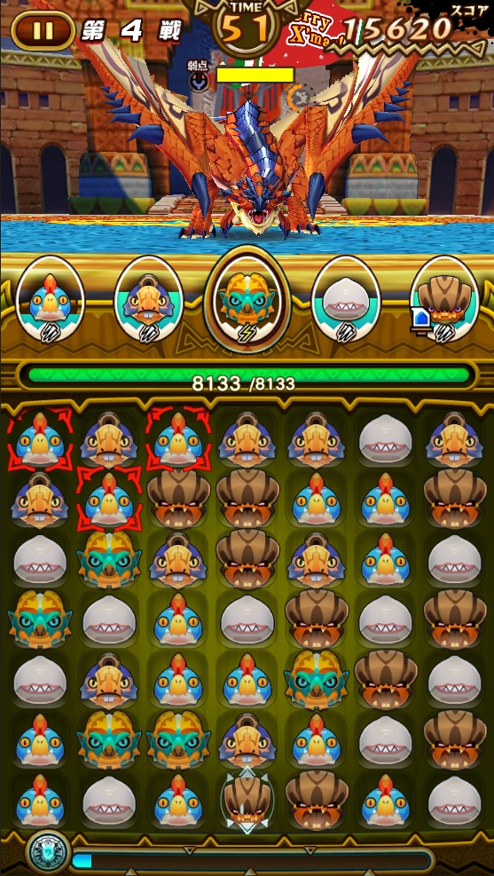 クリスマス限定ガチャでは、「聖夜のリオレウス」と、「聖夜のリオレイア」(ともにSランク)が登場します。サンタ帽子をかぶった、とてもキュートなパズルピースと、クリスマスの飾りがついた鞍を身に着けた姿で、聖なる夜を彩る特別な絆技が炸裂します。