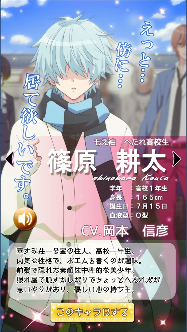 現在は「高橋奏」「三ノ宮銀次郎」「篠原耕太」の3人が攻略対象になっていて、アニメ版と同じく杉田智和さん、櫻井孝宏さん、岡本信彦さんら豪華声優陣がCVを担当しているようです。