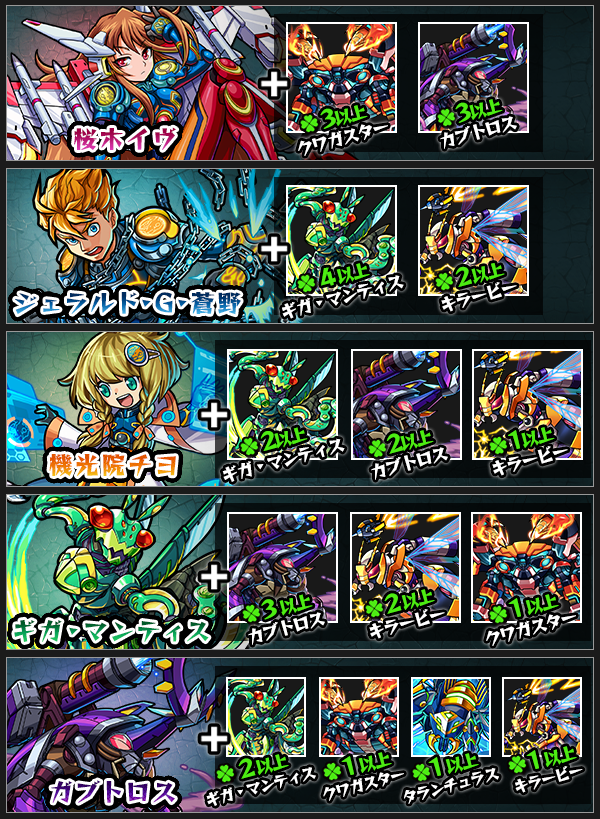 降臨&イベントモンスターには「M・D・T」の敵である昆虫型兵器たち。クエストをクリアすると、各モンスターを手に入れるチャンス!