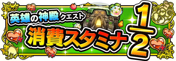 「英雄の神殿」クエストの消費スタミナが「1/2」!