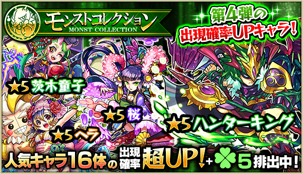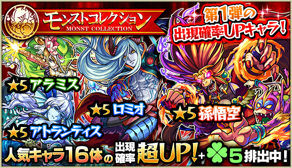 期間中、「モンコレ」対象となったモンスターの排出率が通常よりもアップ&ラック5で排出されます。