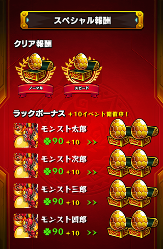 ・クリアすると、「ノーマル報酬」「スピード報酬」「ラックボーナス」で入手可能