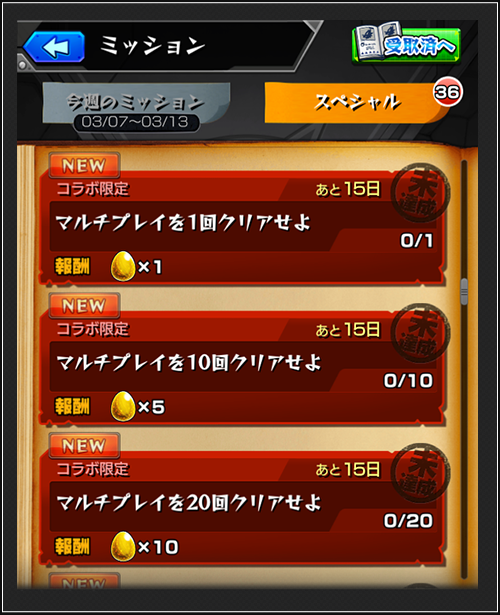 コラボ限定ミッションは、赤く表示され、さらに、期限も表示されるように!