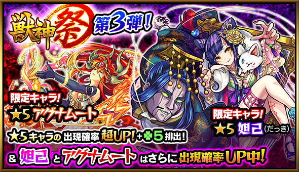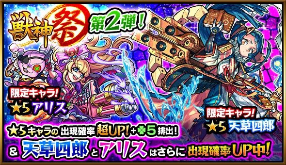 さらに、アグナムート、天草四郎、アリスなど、「獣神祭」でのみ手に入る限定モンスターも登場!