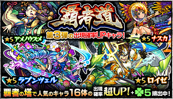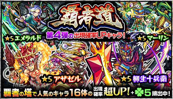 『モンスターストライク(モンスト)』にて8月8日(月)12:00より、ガチャ「覇者道」が開催中!ガチャ「覇者道」は、特別イベントクエスト「覇者の塔」で人気のキャラクター16体が大集結した、スペシャルなガチャです。