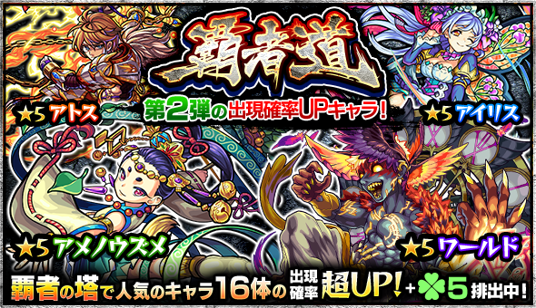 「覇者の塔」で人気のキャラクター16体が大集結した、スペシャルなガチャです。