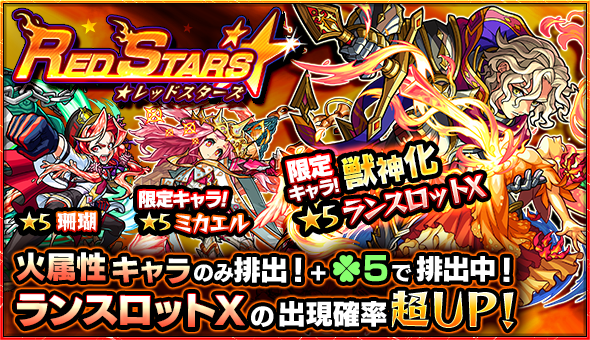 ※ガチャ「RED STARS」で排出されるキャラクターは 「火属性」 のみとなりますので、ご注意ください。