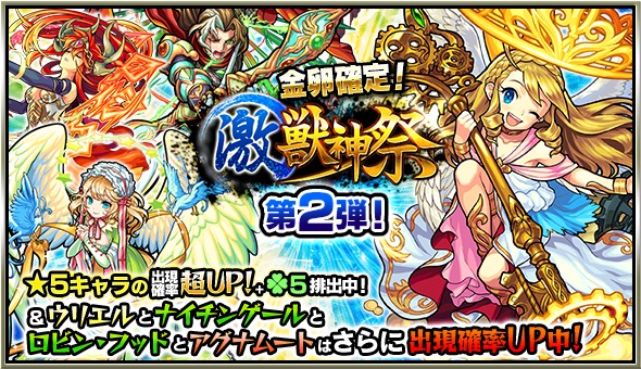 また、激・獣神祭限定キャラクターの「ナイチンゲール」「ロビン・フッド」「妲己」「天草四郎」「ウリエル」「アリス」「アグナムート」「アグナムートX」も排出!