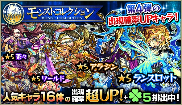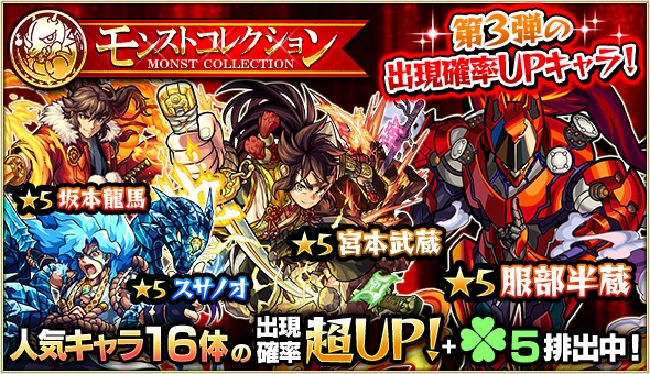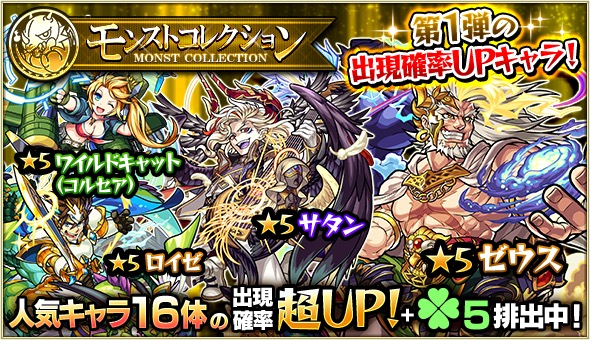 『モンスターストライク(モンスト)』にて1月26日(木)より、ガチャ「モンストコレクション」が開催中!「サタン」「ロイゼ」「珊瑚」「服部半蔵」「ランスロット」など、人気キャラクター16体が大集結したスペシャルなガチャです。