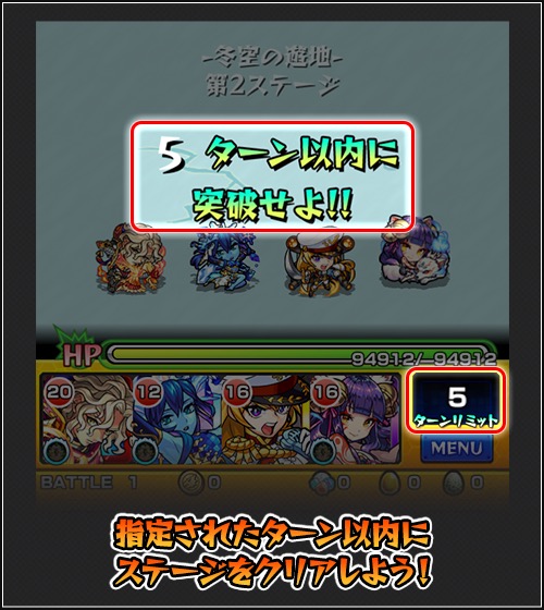 ※「ターンリミット」は、各ステージで指定されたターン数を表します。