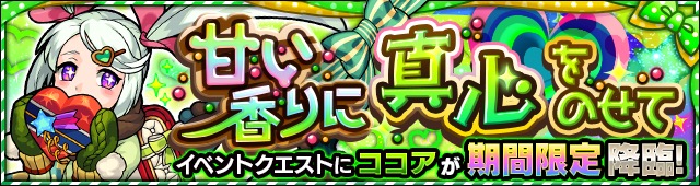 ・上記のクエスト出現期間中、「ココア」と「レディ・ドルチェ」の「究極」ステージをクリアすると「スコア報酬」の獲得ポイントに5倍の「スペシャルボーナス」がつきます!(クエストをストックした場合も、クリア後に「スペシャルボーナス」を獲得できます。)
