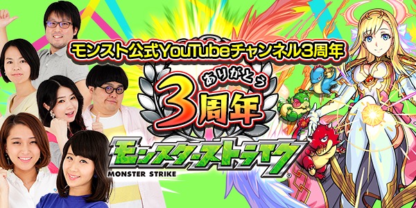 「モンスト公式YouTubeチャンネル」3周年記念キャンペーン開催!