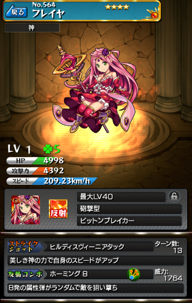「フレイヤ」は比較的最近に登場したモンスターですね。アビリティがビットンブレイカー、そして砲撃型と珍しい能力持ちの子です。