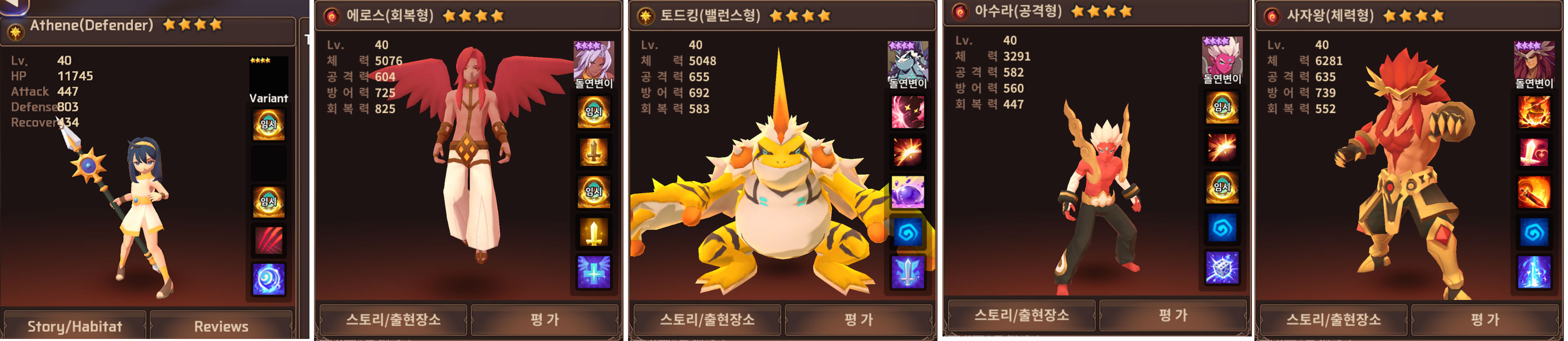 スターモンは3回進化させることができます、進化ごとに25%ステータスが上昇し、見た目も美しく・かっこ良くなっていきます。どのキャラクターも手が込んだデザインで、キャラクターに愛着が湧きやすいのも『モンスタースーパーリーグ』の1つの特徴です。