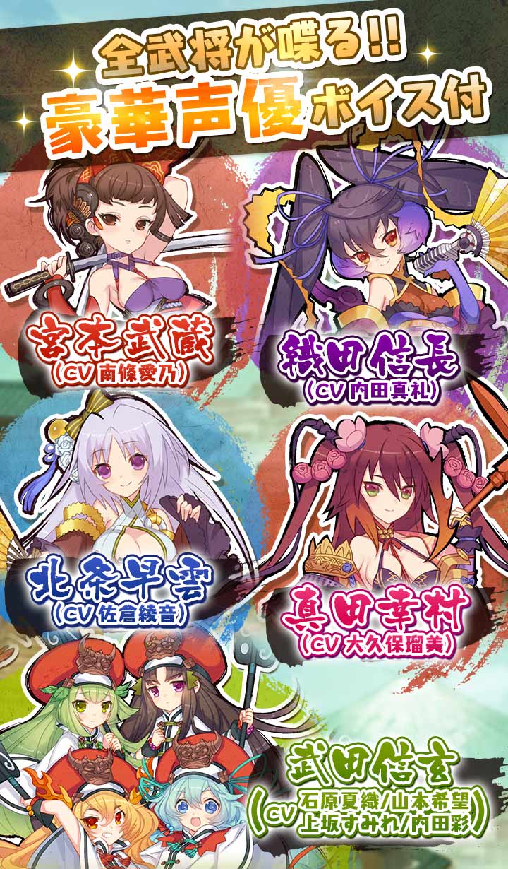 ブラウザカードバトル『戦国武将姫-MURAMASA-』のキャラクターや世界観を継ぐスマートフォン向けの合戦バトルRPG!