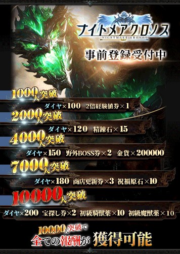 『ナイトメアクロノス』- 正式サービスを開始!事前登録ユーザー数10000人突破報酬をプレゼント。