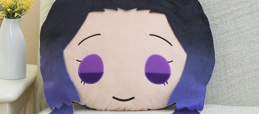 「鬼滅の刃」に登場する胡蝶しのぶのぬいぐるみクッションが登場します。