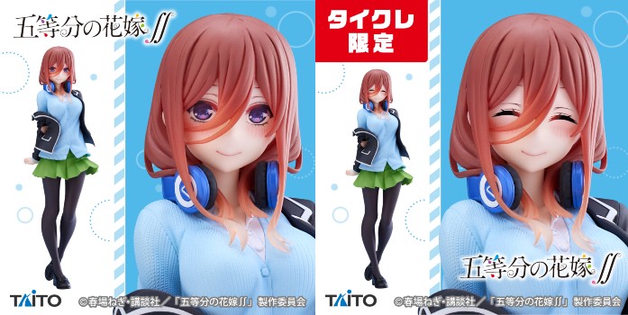 タイトーオンラインクレーンでは、表情が異なるタイクレ限定版が登場します。通常版とは異なるニッコリ表情の制服三玖も要チェック!