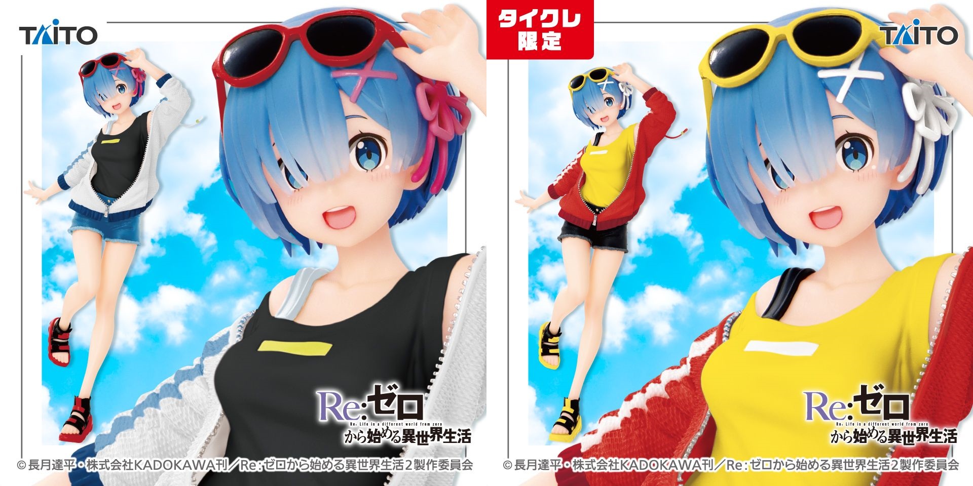 \プライズ登場情報!/TVアニメ「Re:ゼロから始める異世界生活」よりスポーティな服装の #レム のフィギュアがリニューアルして8月6日(土)より順次登場!インナーやサングラスの色などが変わって今回も可愛くなっています✨▼取り扱い店舗はこちらhttps://t.co/OHqkoUdGOX#rezero #リゼロ pic.twitter.com/4741OYJJkJ— タイトートイズ (@Taito_Toys) August 5, 2022