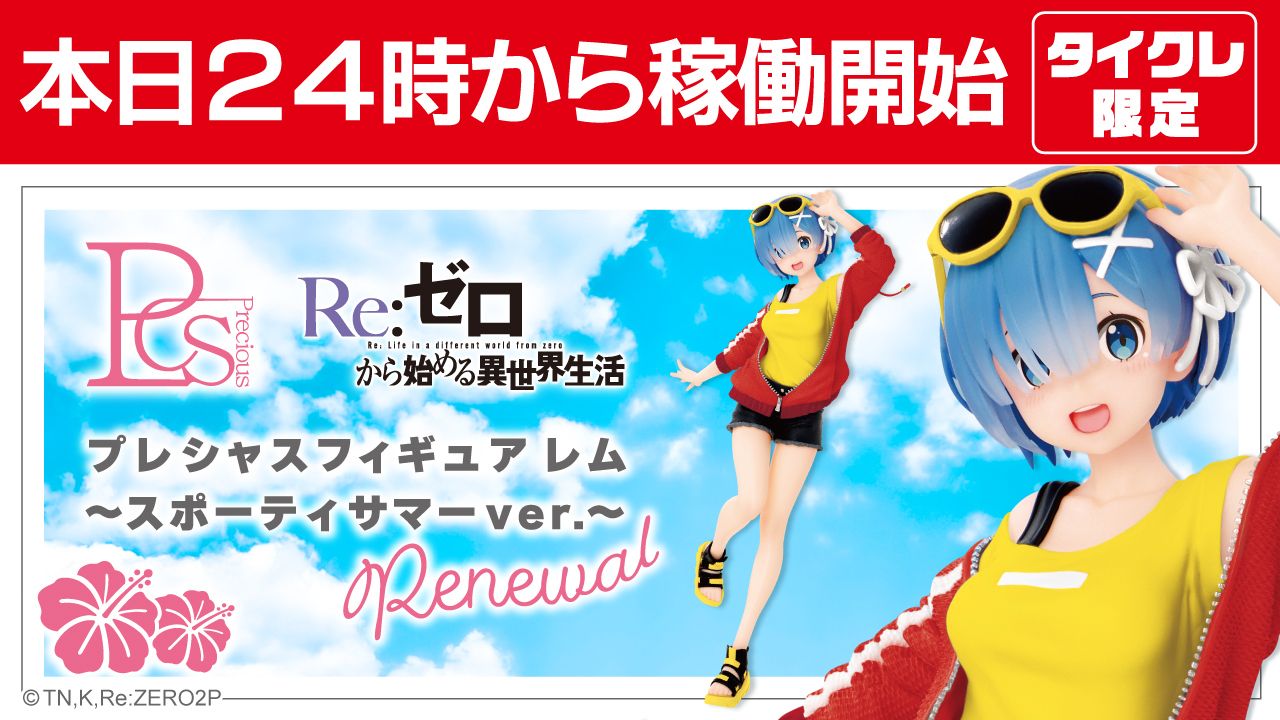 🌊本日24時から稼働開始🌊「Re:ゼロから始める異世界生活」よりレムのフィギュアがリニューアル登場!タイクレ限定カラーとなる赤と黄色のコントラストは元気いっぱいで可愛さ倍増です💕見ているだけで心躍りますね!▼#タイクレ をプレイhttps://t.co/FO4qGUKCOP #リゼロ pic.twitter.com/oYlBxJCVfs— タイトーオンラインクレーン (@Taito_Olcrane) August 5, 2022